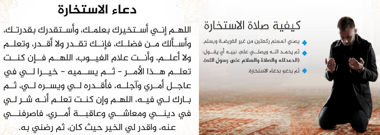الهدف من الموضوع مخافه الله في الناس https://www.gulfupp.com/do.php?img=67935 اذا في واحد من الناس حاب انه بدو يتعرف على اي حدا كان بحب اقولك قبل ما اتشوفو خذ اسمه بالكامل واستخير الله عليه كله ببان معاك بالمنام اذا في خير كل ببان واذا في شر بنان كله اشي بتشوفه اسالوني انا زي بقوكم مش راح تخسر اشي تقبلو الموضوع بكل احترام احنا اخوة بالاسلام لا تغرق الكلام الجميل ولا المظاهر كل حكي فاضي اهم اشي النيه الصادقه بالقلب خلي ايمانك بالله اقوي من هيك صلي ركعتين لله واقراة الحديث ونام على وضوء كل اشي بتشوفه انا باكد للجميع انا بس بشارك هون بالمنتدي هاد وشغله ثانيه الناس بتراقب فيا بسرقو افكاري وبشارقه فيها بمواقع ثانيه خليك خذر منهم اخووي المسلم ارجوو الكل يعرف ويكون على حذر اصدقاء السوء وبس وسلامتكم من كل شرر الله يحمي جميع الناس من حميع الفتن المخفيه والظاهريه اللهم امين يا الله صلاة الاستخارة مو مشاني انا مشانك انت يا مسلم انا بوخذ الاجر من الله وبس على الموضوع كيفية صلاة الاستخارة يصلي المسلم ركعتين من غير الفريضة ويسلم. ثم يحمد الله ويصلي على نبيه (أي يقول: الحمدلله والصلاة والسلام على رسول الله). ثم يدعو بدعاء الاستخارة. دعاء الاستخارة قال النبي ﷺ: إذا هم أحدكم بأمر فليصل ركعتين، ثم ليقل: اللهم إني أستخيرك بعلمك، وأستقدرك بقدرتك، وأسألك من فضلك العظيم، فإنك تعلم ولا أعلم، وتقدر ولا أقدر، وأنت علام الغيوب، اللهم إن كنت تعلم أن هذا الأمر ويسميه باسمه يقول: هذا الأمر، زواجي بفلانة، أو سفري إلى محل كذا، أو شراء كذا، أو ما أشبه ذلك، يعين حاجته اللهم إن كنت تعلم أن هذا الأمر خير لي في ديني ومعاشي وعاقبة أمري، فيسره لي، ثم بارك لي فيه، وإن كنت تعلم أن هذا الأمر شر لي في ديني ومعاشي وعاقبة أمري فاصرفه عني واصرفني عنه، وقدر لي الخير حيث كان، ثم رضني به. وهذا هو دعاء الاستخارة. قال الله تعالي فَلَمَّآ أَلْقَوْاْ قَالَ مُوسَىٰ مَا جِئْتُم بِهِ ٱلسِّحْرُ ۖ إِنَّ ٱللَّهَ سَيُبْطِلُهُۥٓ ۖ إِنَّ ٱللَّهَ لَا يُصْلِحُ عَمَلَ ٱلْمُفْسِدِينَ https://www.youtube.com/watch?v=-_EUdfd0k-o صلاة الاستخارة |