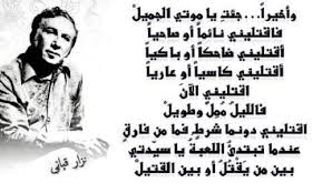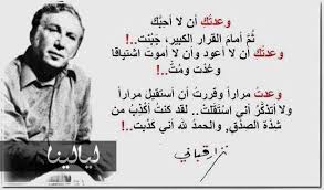 كُلُّ ما اتُّهِمْتُ فيه من جرائمٍ جرائمٌ جميلَهْ .. ألمْ أقلْ بأنَّ هذه الدنيا بغير امرأةٍ ؟ كَوْمٌ من الحجارَهْ . وأنَّ مَنْ لا يعرفُ العِشْقَ فلا يمكنُ أن يعرفَ ما الحضَارَهْ ... |